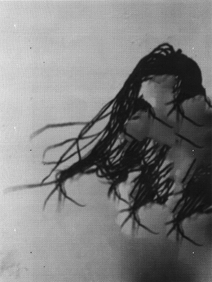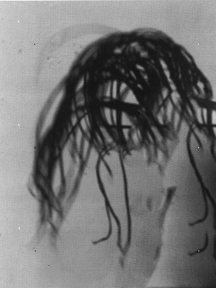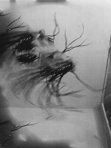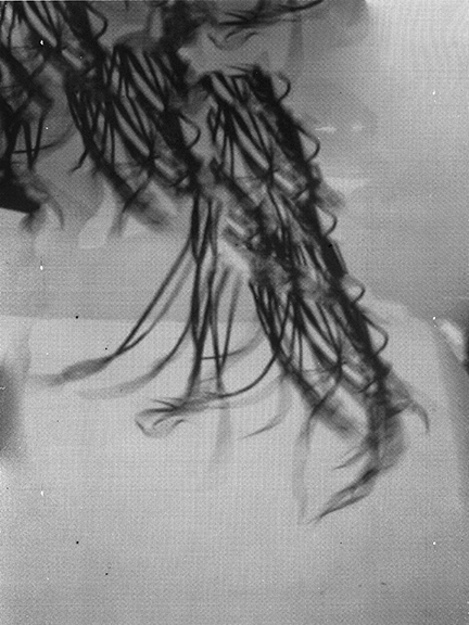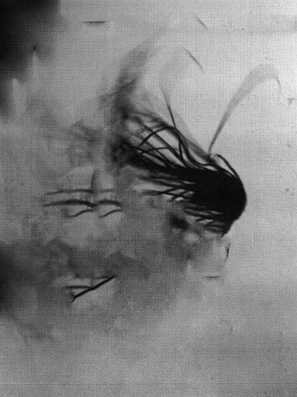 I photographed myself moshing, whipping my hair through the studio and removed my body by duplicating the space around it using the content aware function in photoshop.